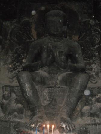 | Different caves have more or less of rock cut Buddha images, a chaitaya and many paintings. |
